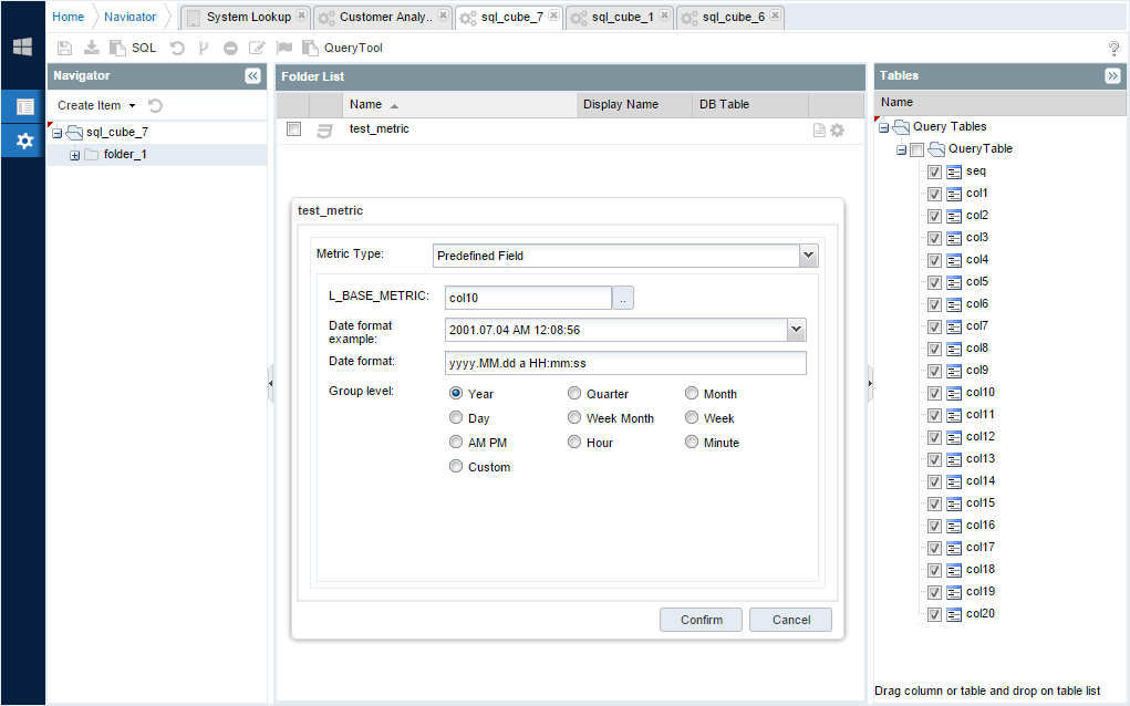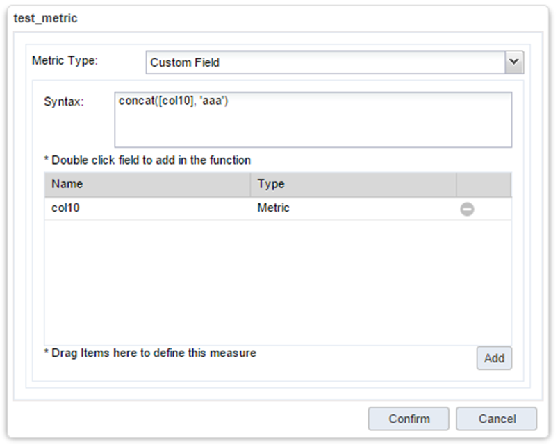 비즈니스 오브젝트 – 폴더/테이블/인라인뷰 선택 – 커스텀 디멘젼 항목 추가 버튼 클릭 |