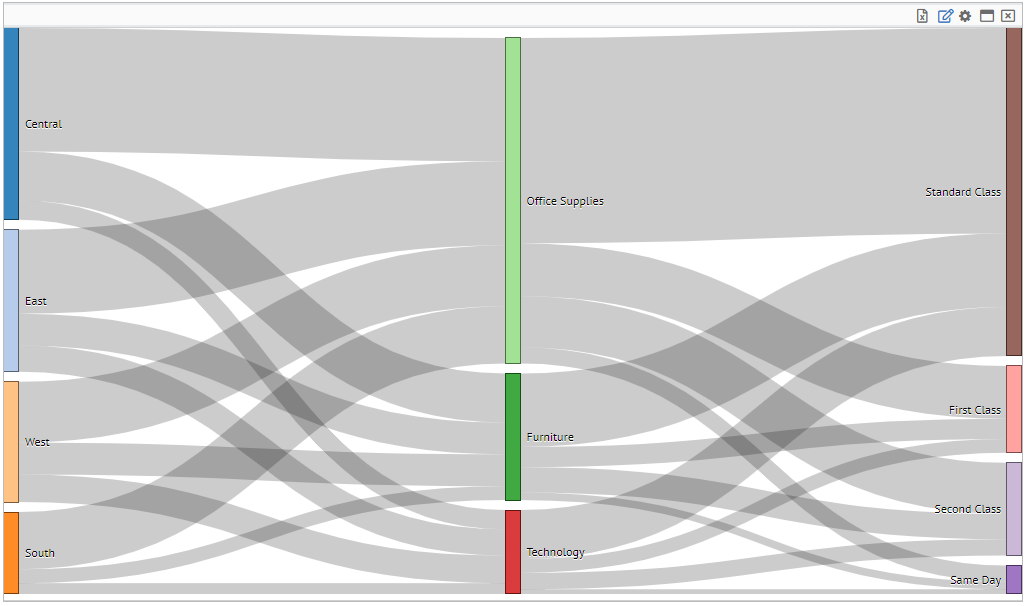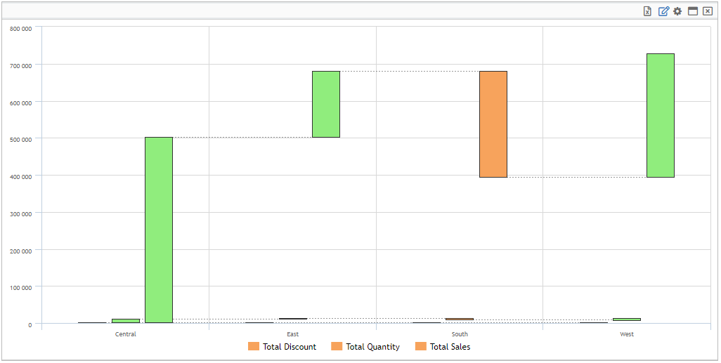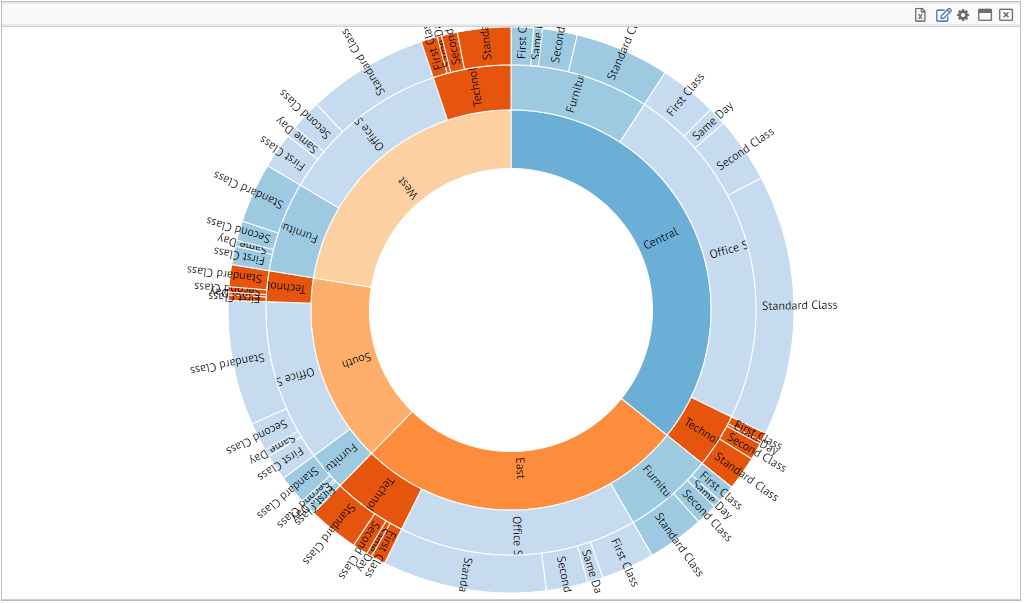 챠트 유형을 추가하거나 리포트 결과를 시각적으로 표시하기 위해 별도의 프로그래밍이 필요하지 않다. 또한 개발 API 를 통해 커스텀 챠트를 추가할 수 있는 기능을 제공하고 있다.