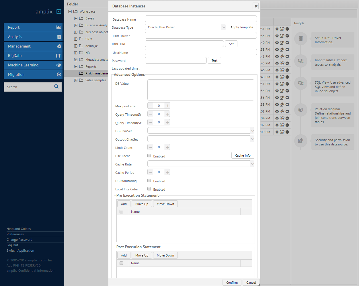 JDBC 자바를 이용하여 데이터베이스 시스템에 접속한다. JDBC 데이터소스를 지원하는 모든 상용 관계형 데이터베이스를 지원한다. 또한 ERP 및 Salesforce 데이터 동기화 하는 커넥터를 제공한다.