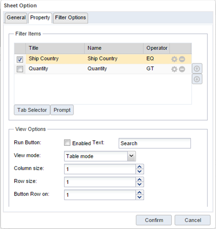 You can edit the prompt view options by clicking the Settings button in the filter entry list.