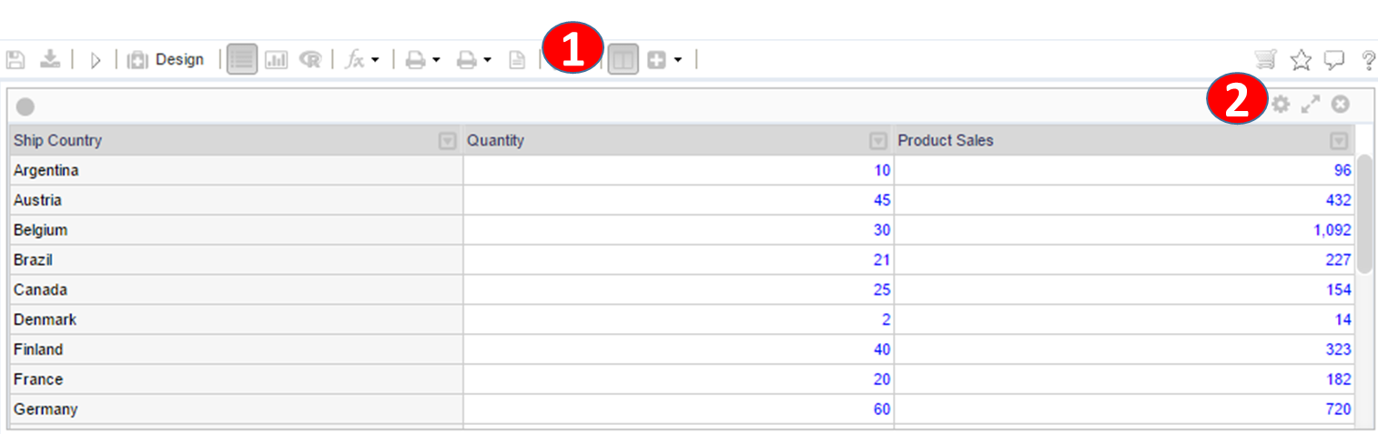 In the query result grid area, specify the report to be drilled through the mouse popup. The user selects the report specified by the mouse pop-up and opens the report as a tab or pop-up window with the selected cell area as a filter. |