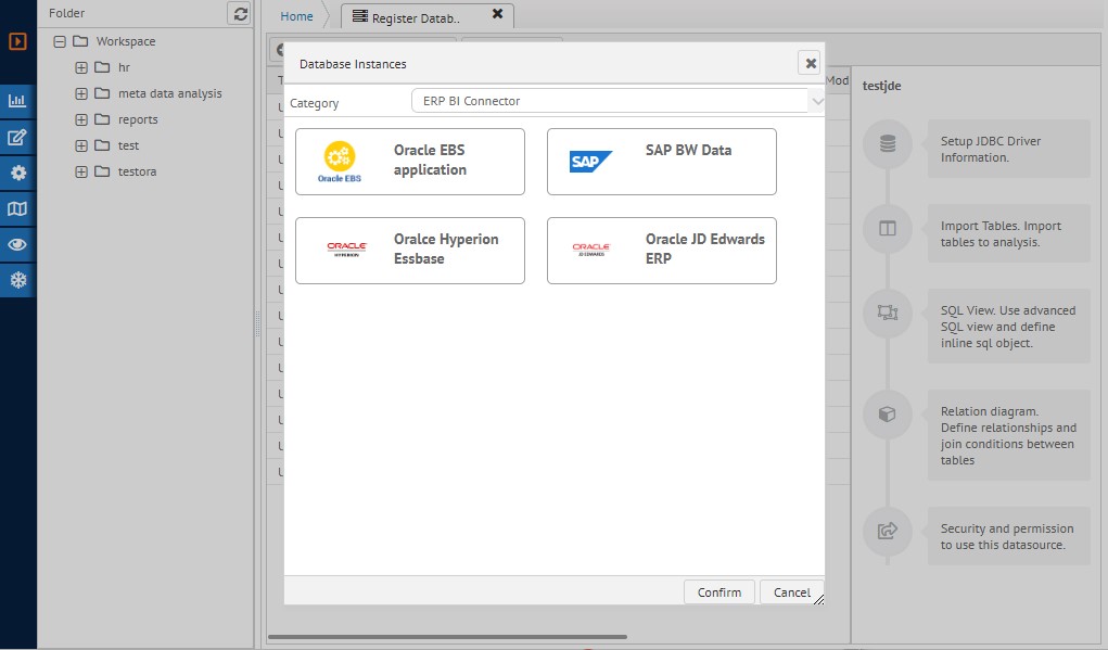 Select from category to ERP BI Connector shows ERP solution that system provides.