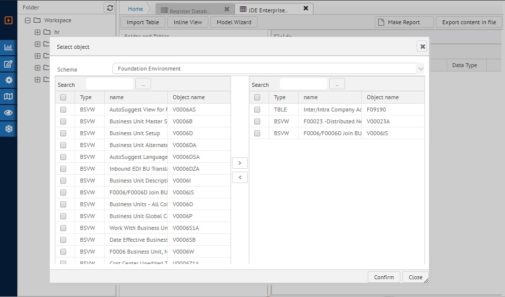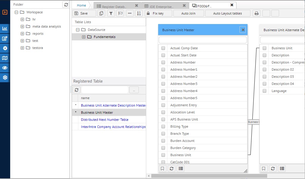 After importing these tables and business views, the results are as shown below.